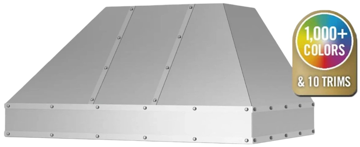 Metals & Strapping: Change your hood material from stainless steel to 14 different custom metals options including brass and copper. Plus, enhance your ventilation hood design by adding custom strapping and rivets to compliment other finishes in your kitchen.