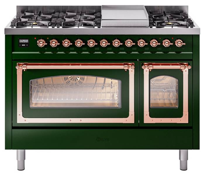 Introducing the new Nostalgie II 48" dual fuel range, a classic addition with a touch of innovation to any kitchen. This range feature sealed burners equipped with total black brass burner that has a non-stick nanotechnological coating, heavy cast iron grates, 3.5 + 1.52 cu. ft. total double oven capacity and soft closing door system.Read More