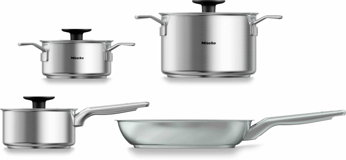 Contents: 1 frying pan, 1 saucepan (1.5 L), 2 saucepans (1.5 L/4 L), 3 lids