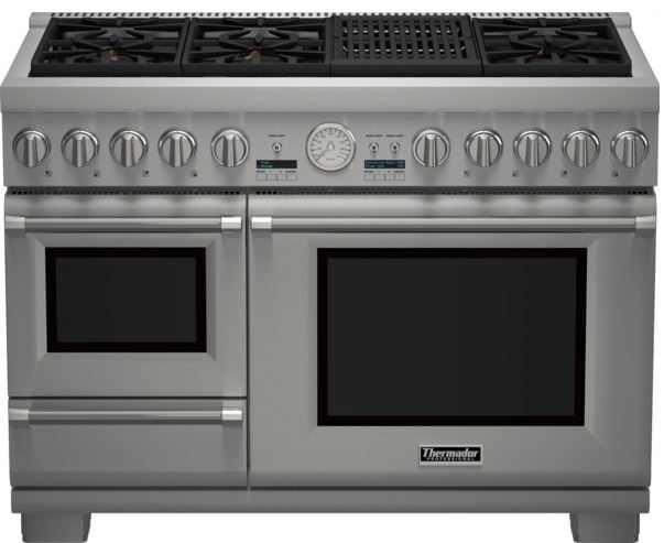 Thermador® Professional Series Pro Grand® Commercial Depth 48" Pro Style Dual Fuel Range with 6.5 cu. ft. oven capacity, patented Star® burners and third element convectionRead More