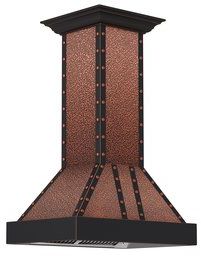 The ZLINE 655i-EBBBB-36 is a 36 inch professional island mounted copper range hood designed to be both elegant and powerful, featuring the industry's only lifetime warranty motor. The professional embossed copper hood with black copper band and embellishments is made from 304 grade stainless steel, featuring ZLINE's proprietary hand-rubbed 7-layer copper finish. This durable construction, modern design, and lifetime warranty motor - a ZLINE exclusive - guarantee a range hood with a timeless design that will last a lifetime. This modern copper hood contains many unique features, such as: Dishwasher-safe stainless steel baffle filters; Built-in LED lighting; High performance 4-speed motor with speeds up to 1200 CFM. All ZLINE range hoods come equipped with everything needed to easily install and use, including a 30 inch chimney with crown molding. This hood will fit most ceilings up to 10 feet, though the chimney is designed to be cut to fit lower ceilings. ZLINE is the industry leader in range hoods and stands by the quality and longevity of their stainless steel range hoods.