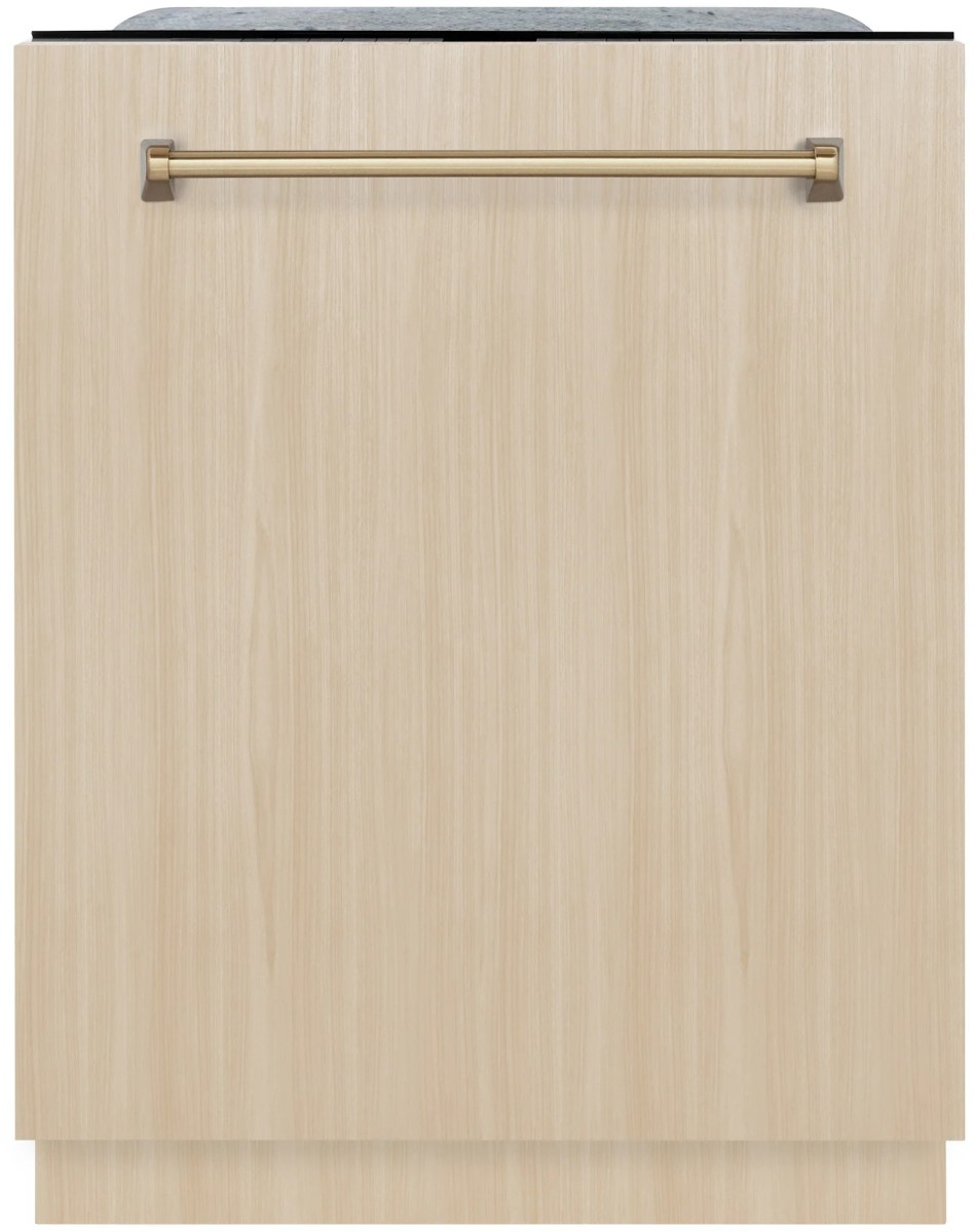 The ZLINE Autograph Edition 24" Monument Series 3rd Rack Top Touch Control Tall Tub Dishwasher in Custom Panel Ready with Champagne Bronze Handle, 45dBa (DWMT-24-CB) utilizes innovative DuraWash® technology and powerful energy-efficient performance to achieve optimal results. Encompassing limitless beauty, precision, and quality, the Autograph Edition Series creates a luxury look by pairing an elegant champagne bronze handle with your own custom door panel.